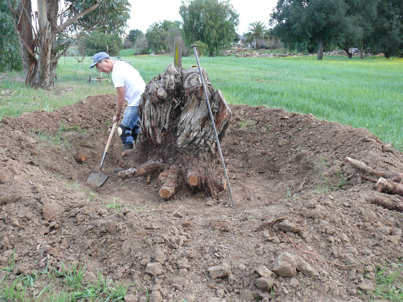 Digging out tree stump. You have to go slow and persist, otherwise the stump will win